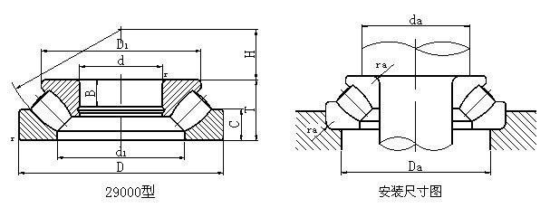 該類軸承主要應(yīng)用于承受以軸向負(fù)荷為主導(dǎo)的軸、徑向聯(lián)合負(fù)荷,單徑向負(fù)荷不得超過軸向負(fù)荷的55%,與其他推力滾子軸承相比,此種軸承摩擦系數(shù)低,極限轉(zhuǎn)速高,且具有調(diào)心性能,本型錄所列29000型推力調(diào)心滾子軸承為經(jīng)過優(yōu)化設(shè)計(jì)的加強(qiáng)型軸承,此種軸承的球面滾子為非對(duì)稱性球面滾子,能減少滾子和滾道在工作中的相對(duì)滑動(dòng),并且滾子長、直徑大、滾子數(shù)量多、負(fù)荷容量高,通常采用油潤滑,轉(zhuǎn)速較低時(shí)也可脂潤滑。